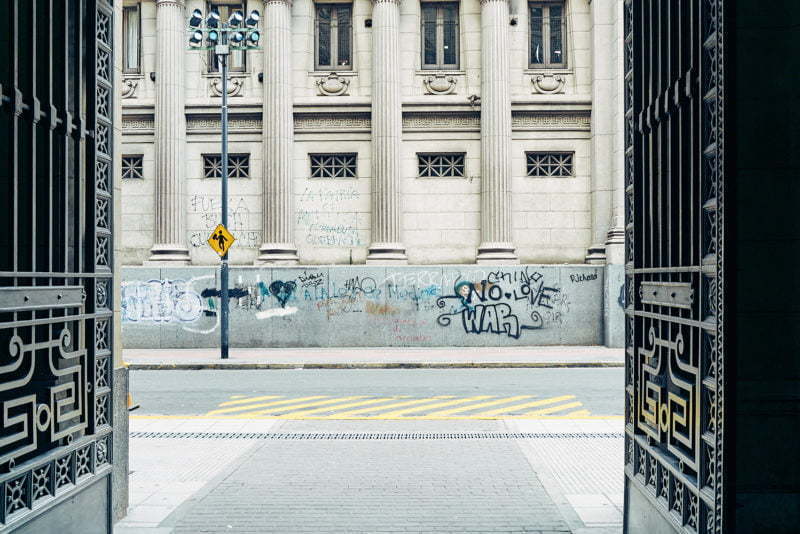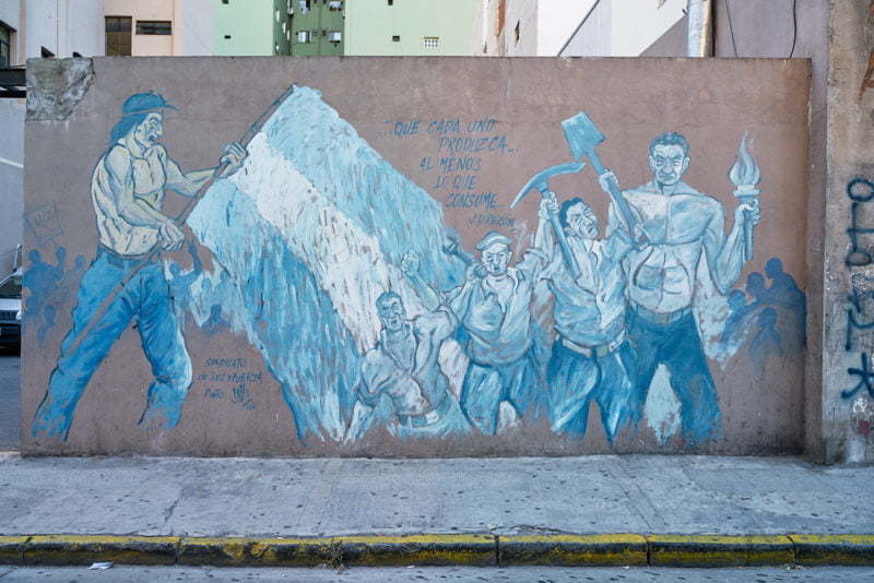 As I wandered about, I came across loud demonstrations in front of Congress on the Plaza de los Dos Congresos and I wasn’t that surprised to see a well-worn flag of Juan and Evita Perón fluttering from a tree on the square. The building for the Unión Industrial Argentina had several dried paint bombs covering its facade; socio-political street art was everywhere. All this is mixed in with the rest of Buenos Aires’ passion for life – its food, culture, bars, tango, football… – I was quickly overwhelmed by it all, the glimpses of grandeur chipped away by the years of struggle.