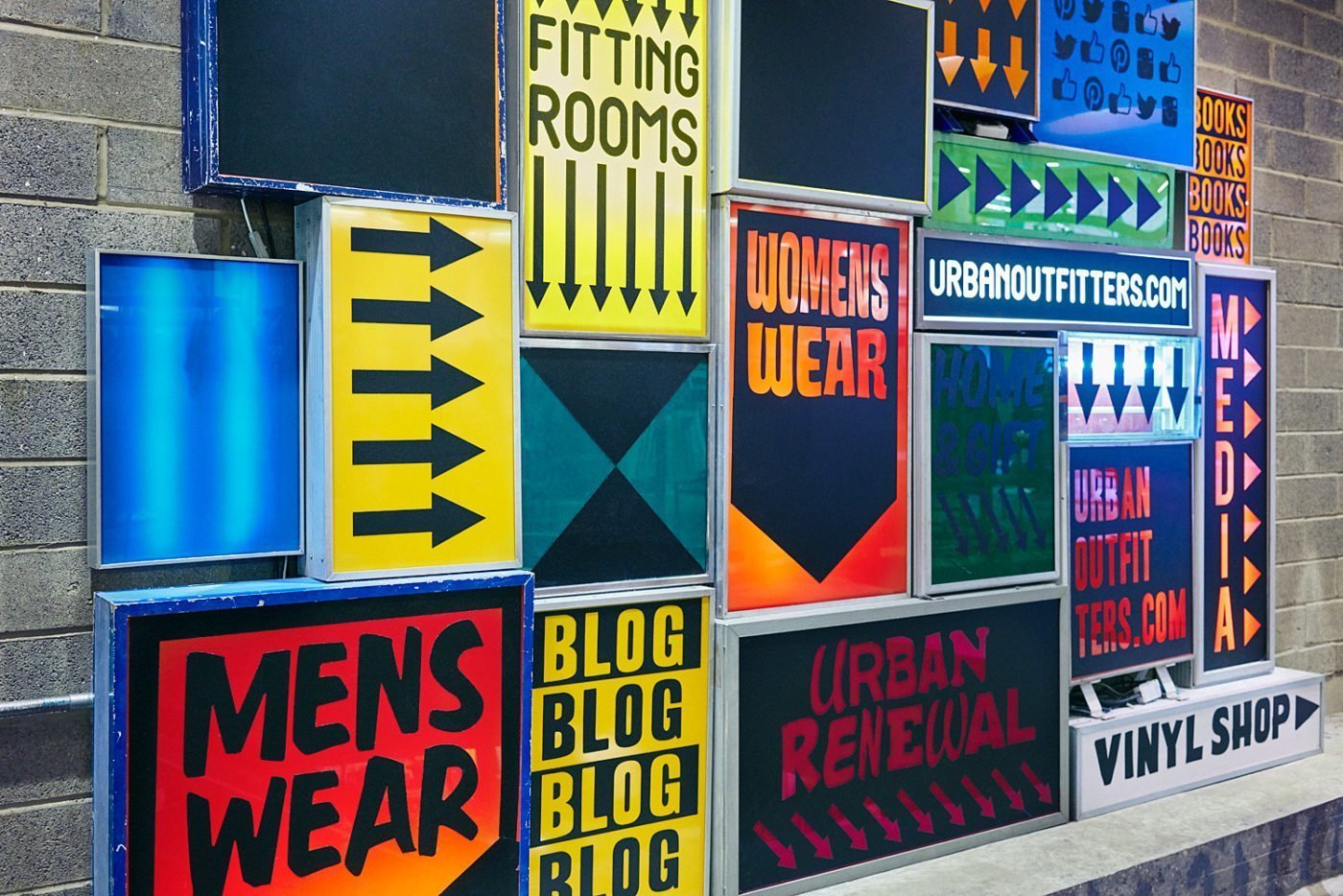 Having a camera with me when out shopping gives me something to do whilst the others are trying things on and can lead to some interesting results… There’s the fitting room in a Gap store, with added gap; a yucca plant beneath a slogan from the now defunct American Apparel brand; shots of a floor, a ceiling and a wall at probably more than one Urban Outfitters store; Adidas and Nike trainers belonging to two teens (not mine) hanging out in a photo booth in Topshop; a stack of baking trays at the Whole Foods Market in the old Barkers Building on High St Kensington; and I have no recollection of what it was that was ‘open’, I just liked the tones.