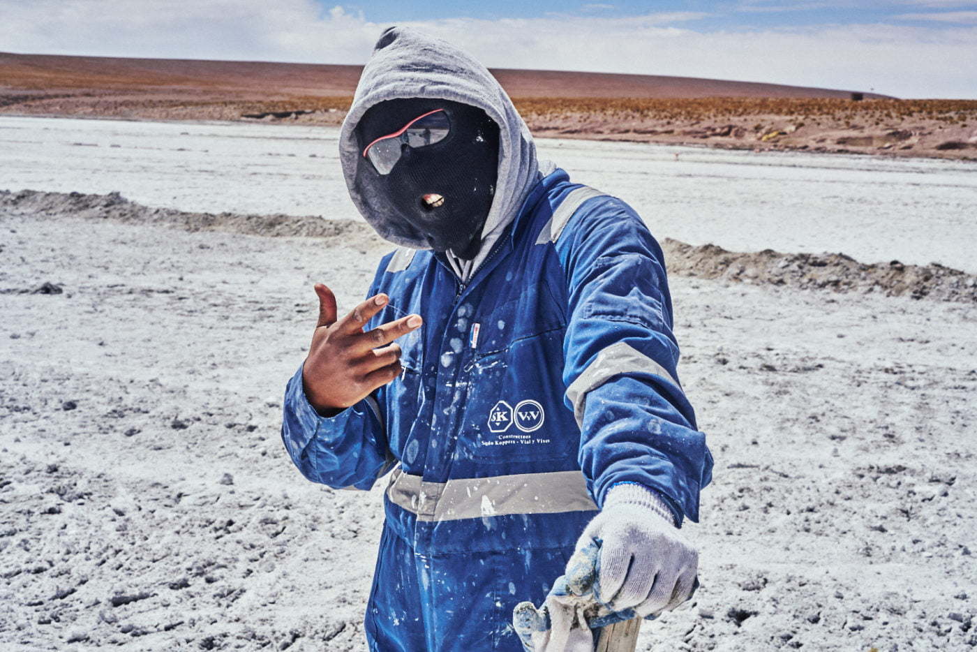 An early start the next morning, with the mural the last thing we saw as we headed out of ‘town’. We came across this guy working away on a dried out lake-bed in the desert sun. It turns out that he and his buddy were students raising some extra cash during the summer break to pay for their tuition and that they’re not harvesting salt, as we presumed, but borax.