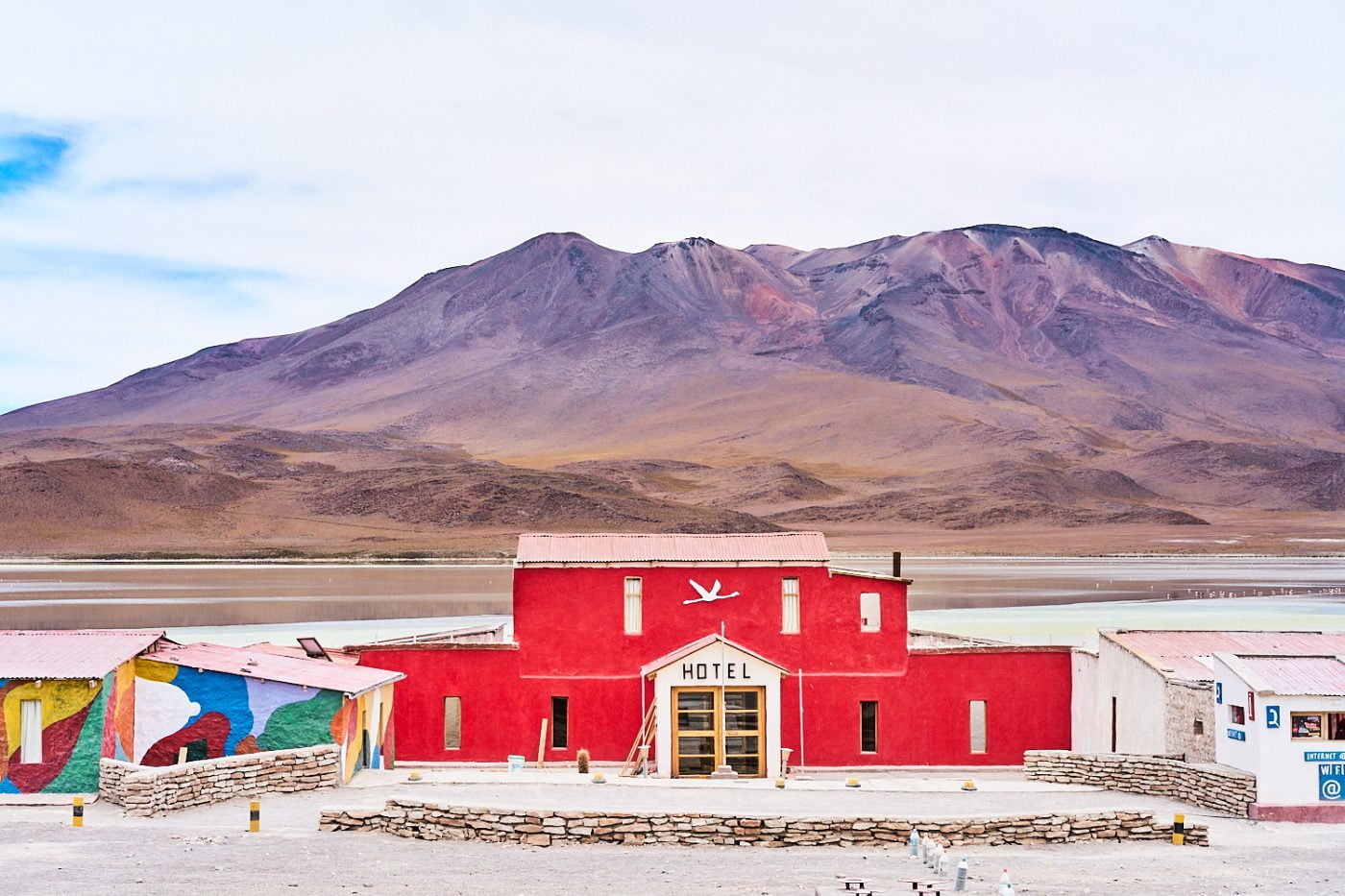 We set off not so bright but early the next morning, first to the unusual rock formations found in the Siloli desert, the most famous (or most photographed) being the Rock Tree you see here. This was also the location of one of our more epic frisbee sessions, a great spot for it and I think it signalled the moment when we were all pretty much over our altitude issues. There were at least two more lakes, both with very low water levels again. You could almost feel the land and the animals straining for the rainy season to finally begin. The bright coloured hotel takes you by surprise after roughing it for a few days and was a very popular gathering spot for travellers. I believe the WIFI sign acts like a beacon to all those who have suffered from being offline for a few days. “Have you got wifi?” must have become one of the most common expressions in all bars, cafes and restaurants around the world. And thrown into the mix are a few random landscapes picked up along the way, almost nonchalantly.