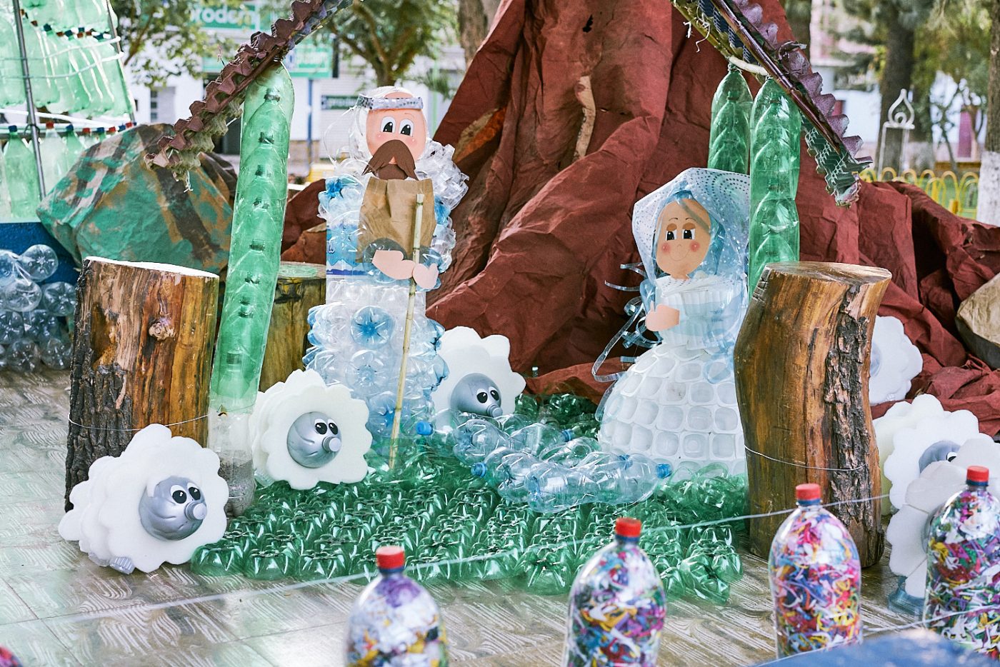 I next needed cash to pay for the tour, so headed to the ATM on the Plaza de la Independencia, where I came across one of the best nativity scenes so far on my travels. Who knew you could do so much recycling plastic bottles, empty yoghurt pots, egg cartons, paper, bottle tops… As a statement, it says a lot about Bolivia. I’d only just arrived in the country but, with this and the food market, I was already starting to really like what I saw.